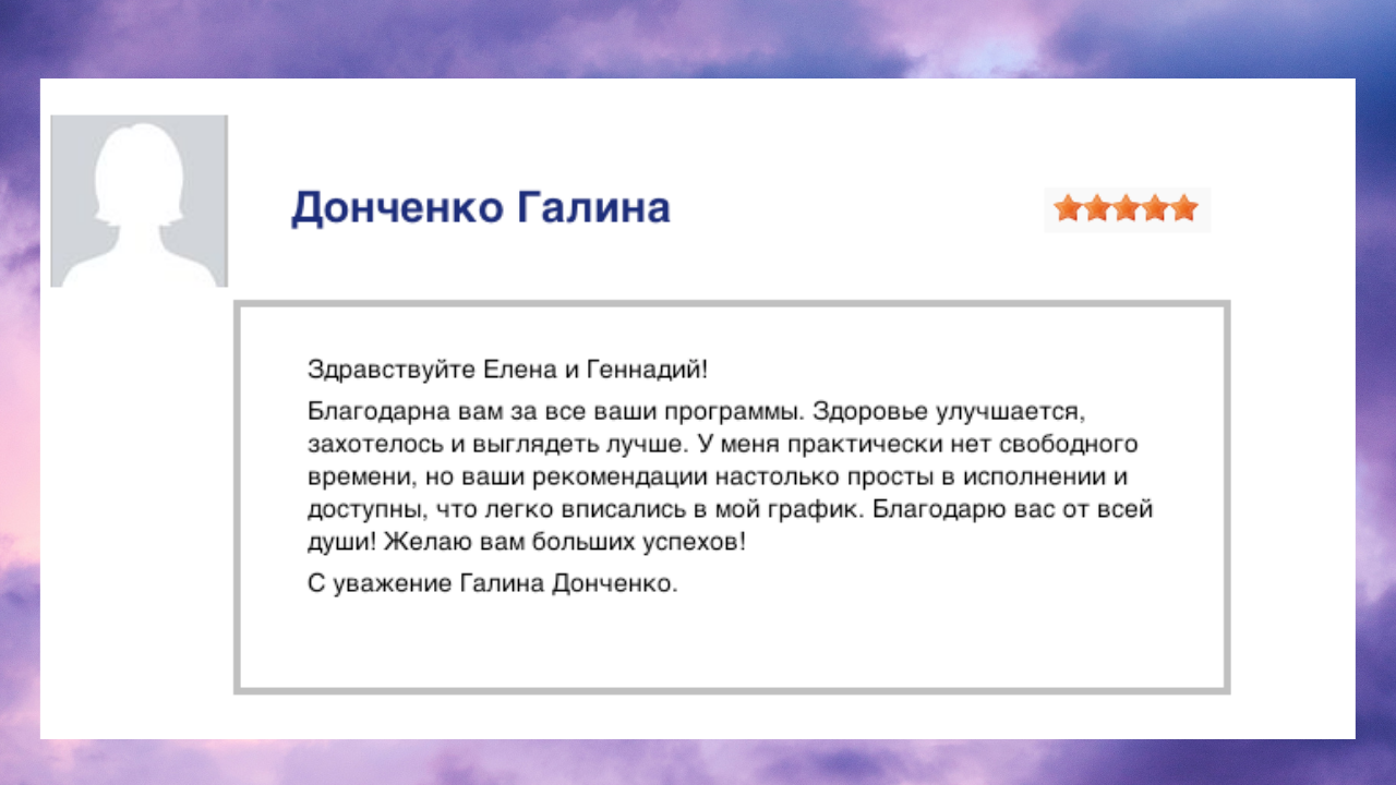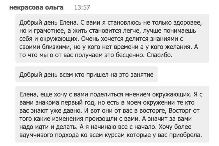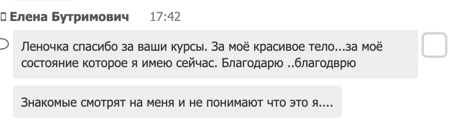 «Леночка, спасибо за ваши курсы. За моё красивое тело, за моё состояние, которе я имею сейчас.